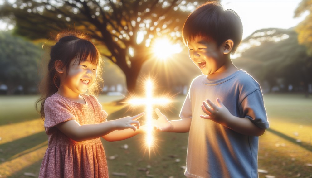 公园里小兄妹欢喜接待耶稣